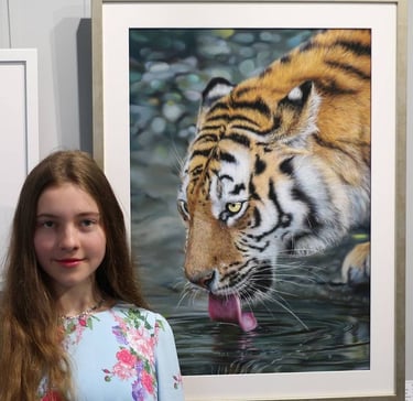 Isabella’s passion is wild life hyperrealism. Her artwork is highly detailed with beautiful animals looking at you, you can almost feel them breathing. Isabella’s artwork is becoming very popular internationally.